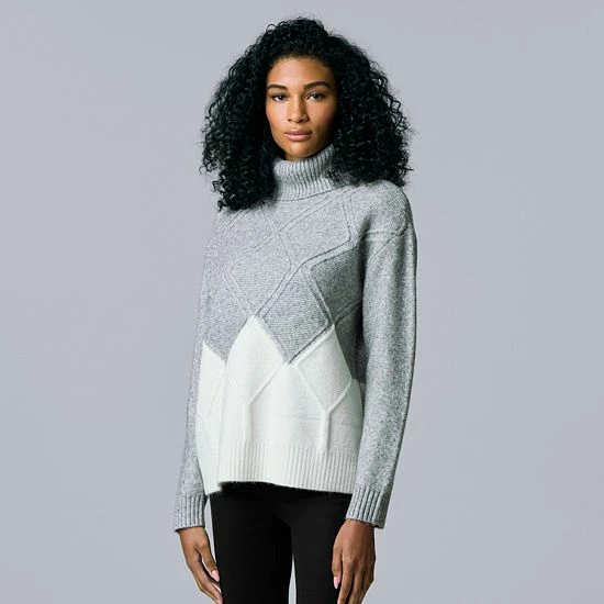 Update your fall fashion with this petites’ argyle turtleneck sweater from Simply Vera Vera Wang.