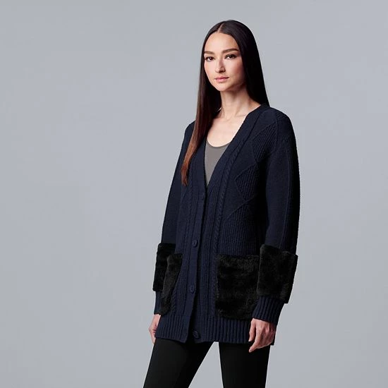 Add instant style to your closet with this women’s petite Simply Vera Vera Wang faux-fur coatigan.
