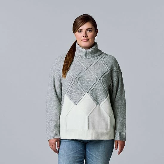 Update your fall fashion with this women’s argyle turtleneck sweater from Simply Vera Vera Wang.