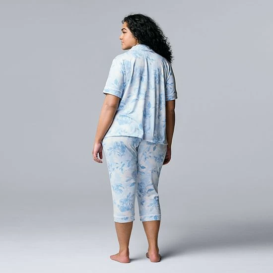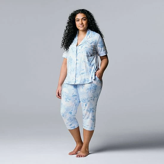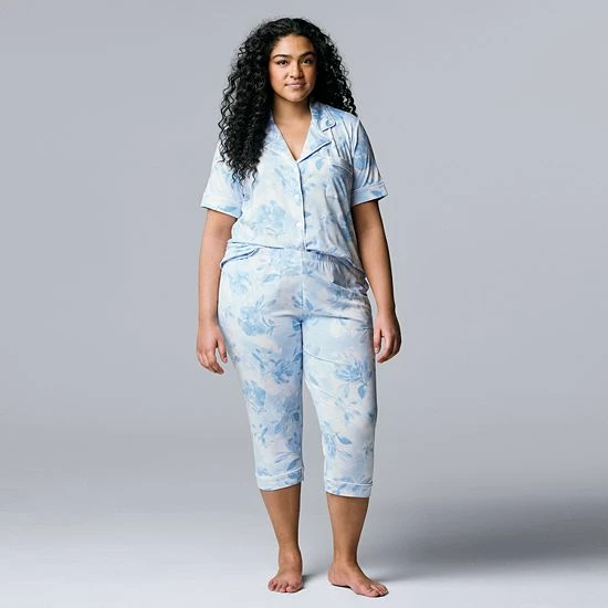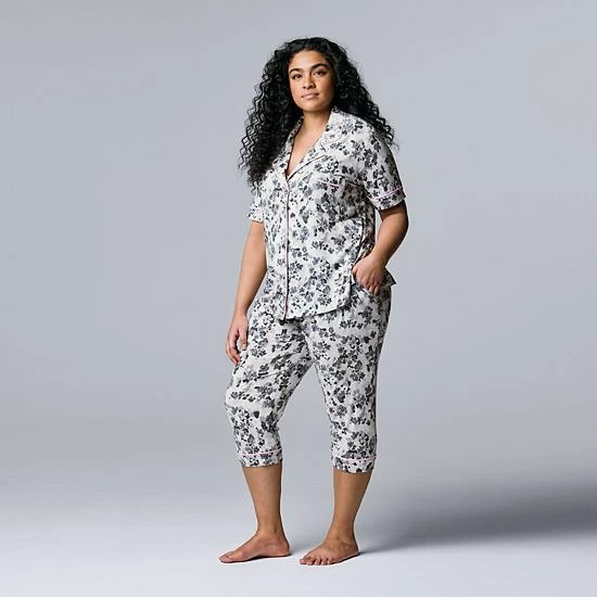 Cozy up in comfort and style with this matching women’s Simply Vera Vera Wang short sleeve pajama shirt and pajama capri pants sleep set.