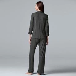 Women’s Simply Vera Vera Wang Basic Luxury Notch Collar Pajama Shirt & Pajama Capris Set Black