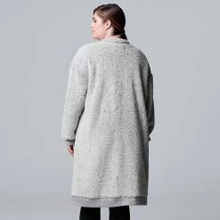 Plus Size Simply Vera Vera Wang Plush Sherpa Long Sleeve Long Open Front Long Cardigan Gray