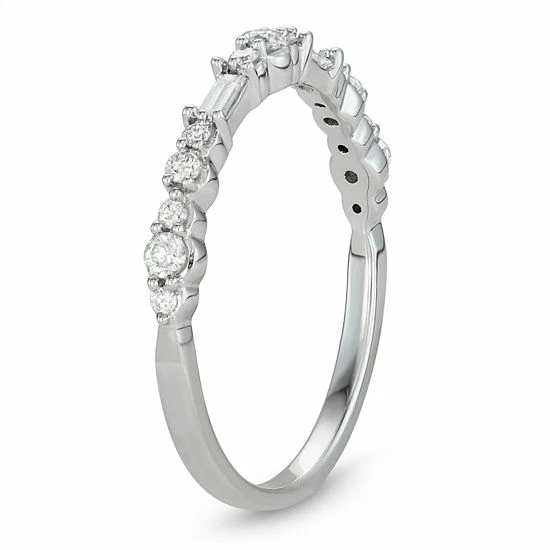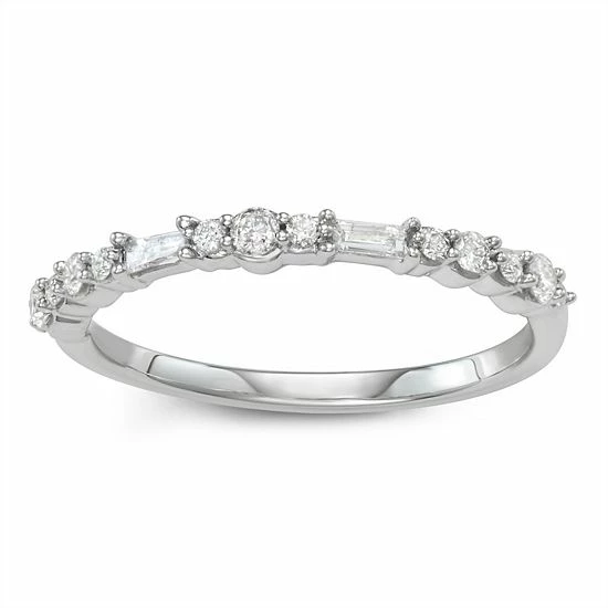 Adorned with round- and baguette-cut diamonds, this Simply Vera Vera Wang 14k gold anniversary ring is a beautiful symbol of your unending commitment.