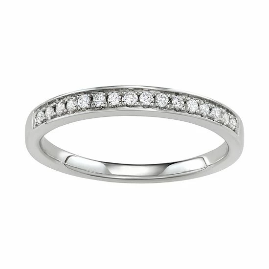 Decorated with sparkling diamonds, and polished to a lustrous finish, this Simply Vera Vera Wang wedding band is a timeless symbol of your love and commitment.