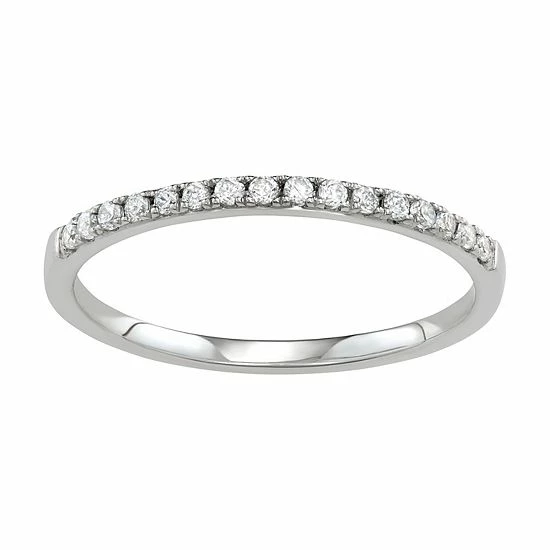 Decorated with sparkling diamonds, and polished to a lustrous finish, this Simply Vera Vera Wang wedding band is a timeless symbol of your love and commitment.