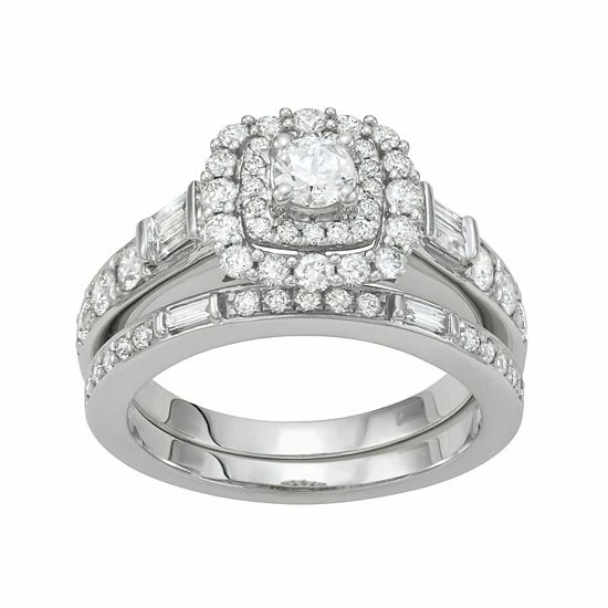 Convey your love in a magnificent way when you propose with this beautiful Simply Vera Vera Wang halo engagement ring set. Featuring round- and baguette-cut diamonds, this bridal set is sure to be cherished.