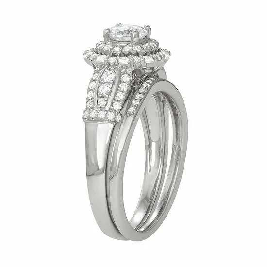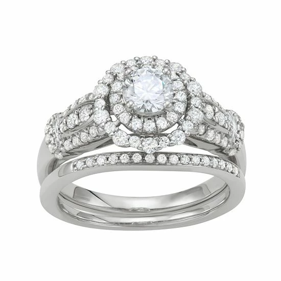 Convey your love in a magnificent way when you propose with this beautiful Simply Vera Vera Wang halo engagement ring set. Decorated with dazzling, round-cut diamonds, this bridal set is sure to be cherished.