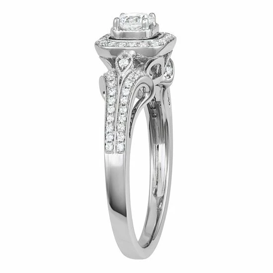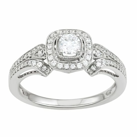 Adorned with round-cut diamonds in a tiered halo design, this Simply Vera Vera Wang engagement ring is simply stunning.