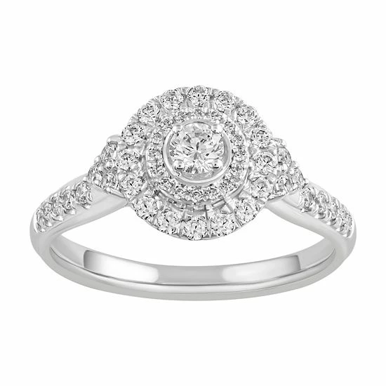 Beautifully adorned with dazzling, round-cut diamonds, this 14k white gold Simply Vera Vera Wang engagement ring is a breathtaking symbol of your commitment.