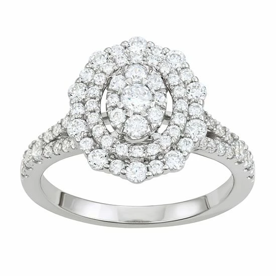 Beautifully adorned with tiers of round-cut diamonds, this Simply Vera Vera Wang oval engagement ring is an enchanting symbol of your commitment.