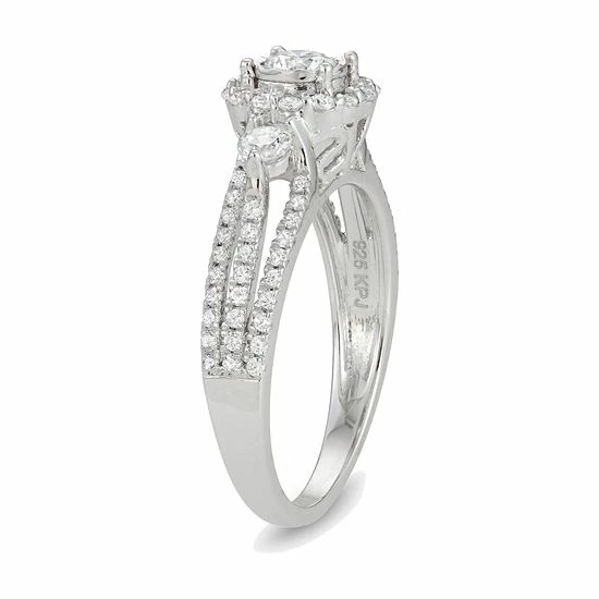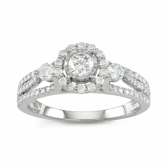 Simply stunning. This white gold ring from Simply Vera Vera Wang features round-cut diamonds arranged in a halo motif and along the band.