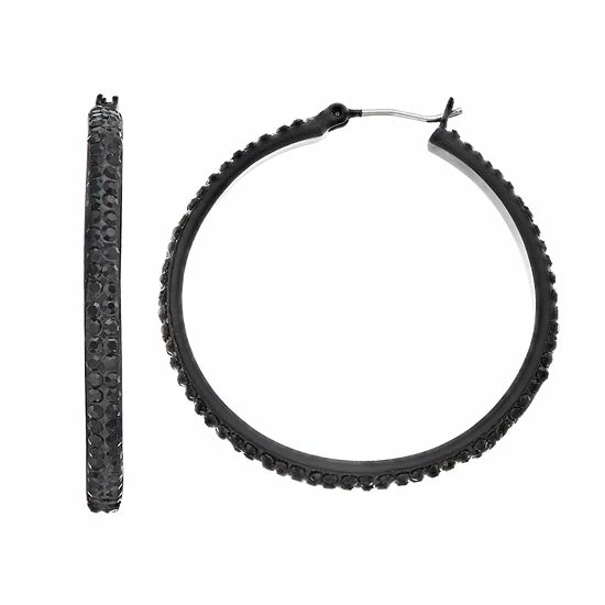 Add a touch of fashionable flair to your look with these modern black hoop earrings from Simply Vera Vera Wang.