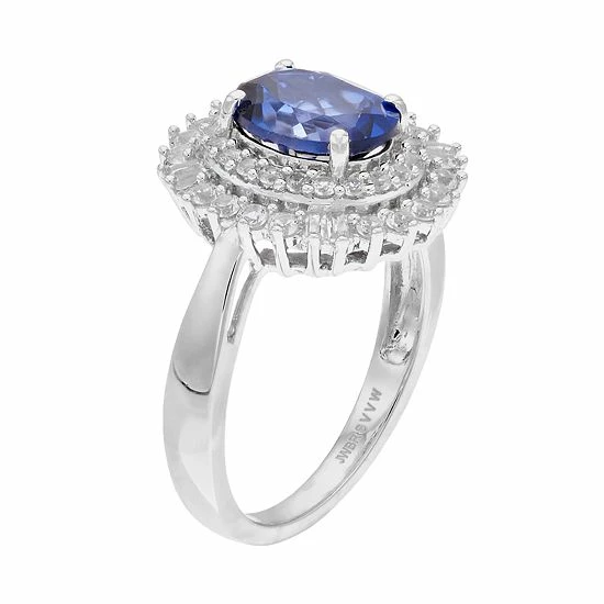 Lab-created blue and white sapphires set in a timeless halo design give this Simply Vera Vera Wang an elegant look you’ll love.