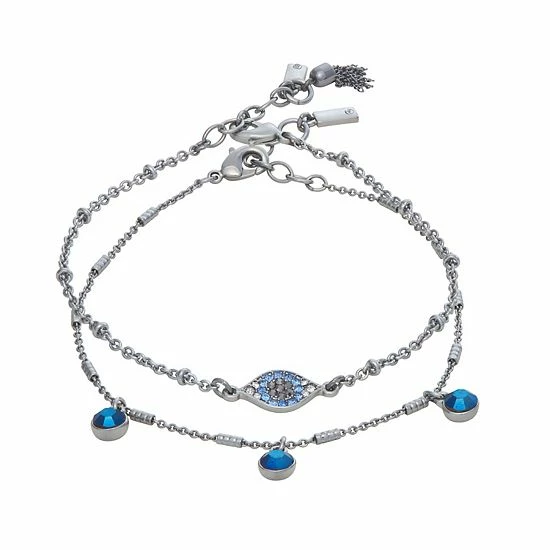 Accent your look with this beautiful light hematite tone blue crystal evil eye anklet set from Simply Vera Vera Wang.