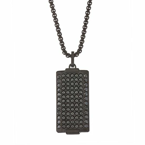 Black cubic zirconia accents lend an eye-catching touch to this Simply Vera Vera Wang black stainless steel dog tag necklace.