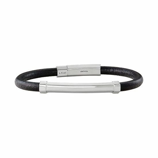 Complete your casual wardrobe with this Simply Vera Vera Wang stainless steel and black leather bracelet.