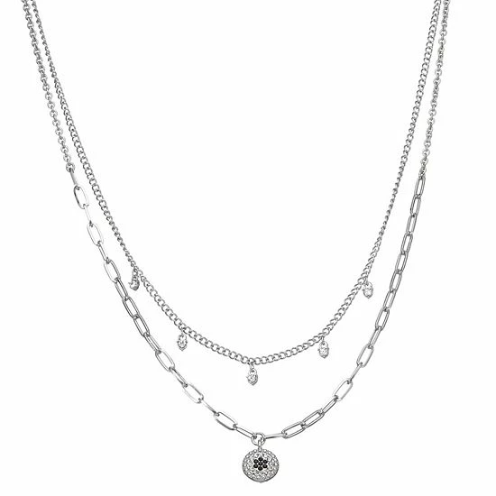 Finish off your look in style with this crystal-studded silver tone Simply Vera Vera Wang double layer pendant necklace.