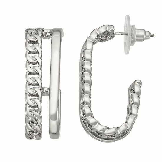Turn heads in these unique curb chain double-row silver tone C-hoop earrings from Simply Vera Vera Wang.