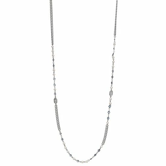 With its crystal and simulated pearl elements and sparkling starburst medallion stations, this silver tone necklace from Simply Vera Vera Wang is the perfect finishing touch to any ensemble.