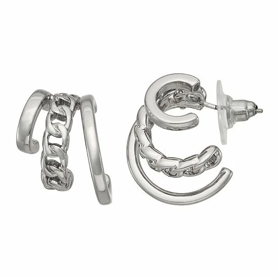 Add a touch of punk rock edge to your wardrobe with these silver tone three-row C-hoop earrings from Simply Vera Vera Wang.