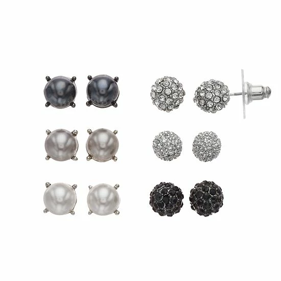 This simulated pearl and simulated crystal fireball earring set from Simply Vera Vera Wang offers versatility to your style.