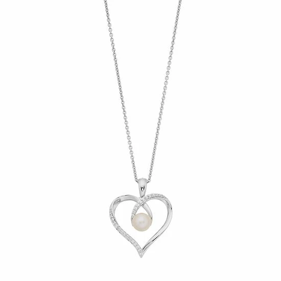 Simple, yet elegant and lovely, this Simply Vera Vera Wang freshwater cultured pearl and diamond heart pendant lends a feminine touch to your ensembles.