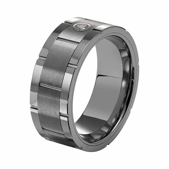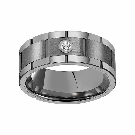 Adorned with a single diamond accent and a brushed finish, this Simply Vera Vera Wang tungsten carbide wedding ring is a captivating choice.