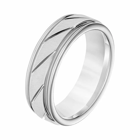 Designed with diagonal details and a brushed finish, this Simply Vera Vera Wang men’s wedding band offers a handsome way to showcase your devotion.