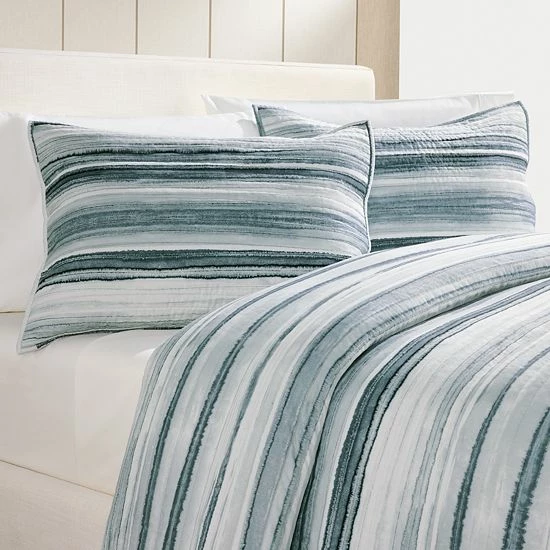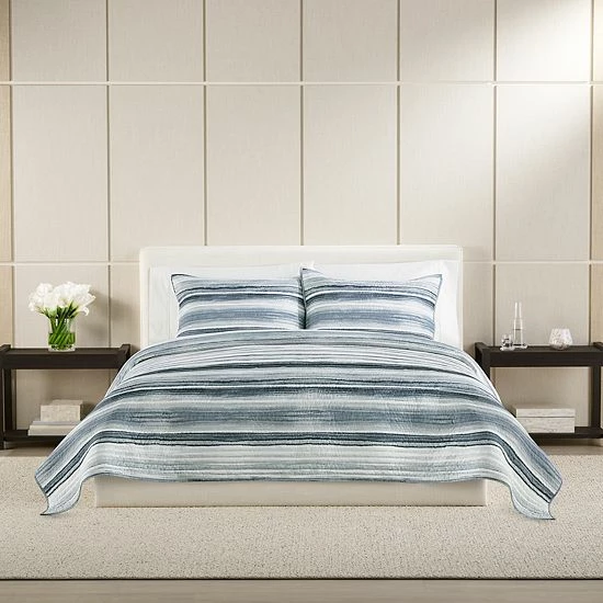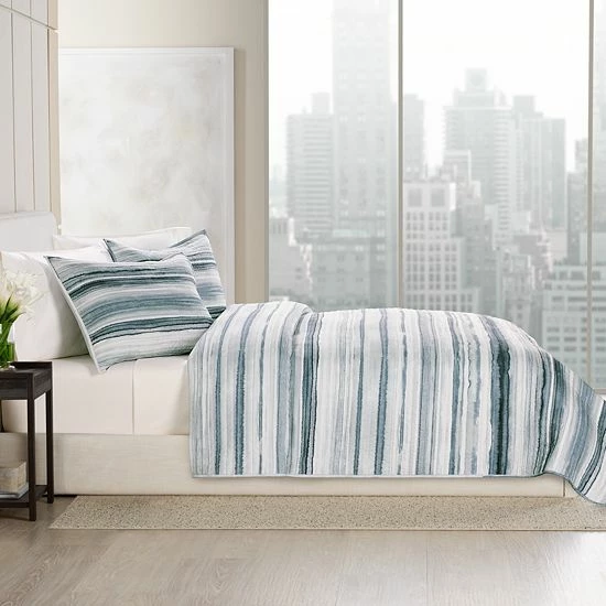 Add a designer look to your space with this Simply Vera Vera Wang Watercolor Stripe Printed Quilt Set with Shams.