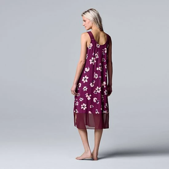 Featuring a luxuriously soft jersey construction with satin and chiffon accents, this women’s Simply Vera Vera Wang chemise abounds with feminine style and comfort.