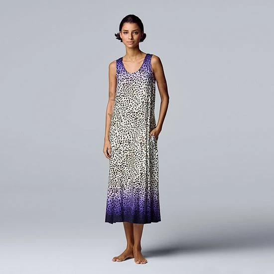 Featuring a fun allover print and soft jersey construction, this women’s Simply Vera Vera Wang maxi chemise makes lounging a dream.