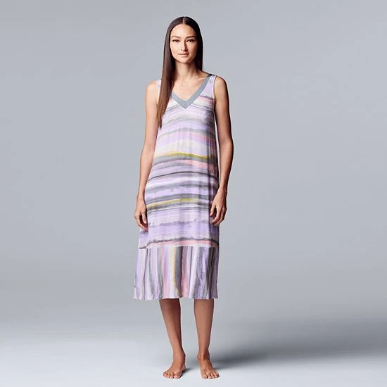Featuring a luxuriously soft jersey construction with satin trim, this women’s Simply Vera Vera Wang maxi chemise will have you drifting off to sleep in complete comfort and style.