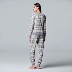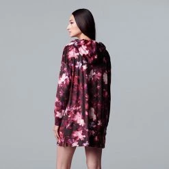 Women’s Simply Vera Vera Wang Velour Pajama Top And Banded Bottom Pajama Pants Sleep Set Gray Floral