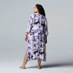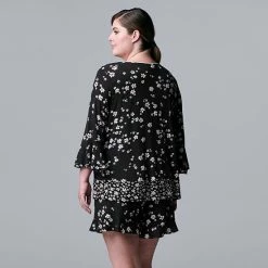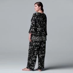 Plus Size Simply Vera Vera Wang 3/4 Sleeve Cozy Henley Sleepshirt With Matching Headband Black Dot