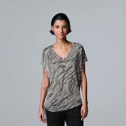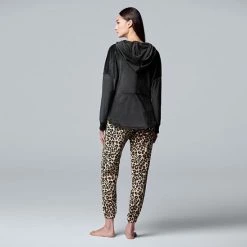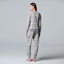 Petite Simply Vera Vera Wang Velour Pajama Top And Banded Bottom Pajama Pants Sleep Set Pink Plaid
